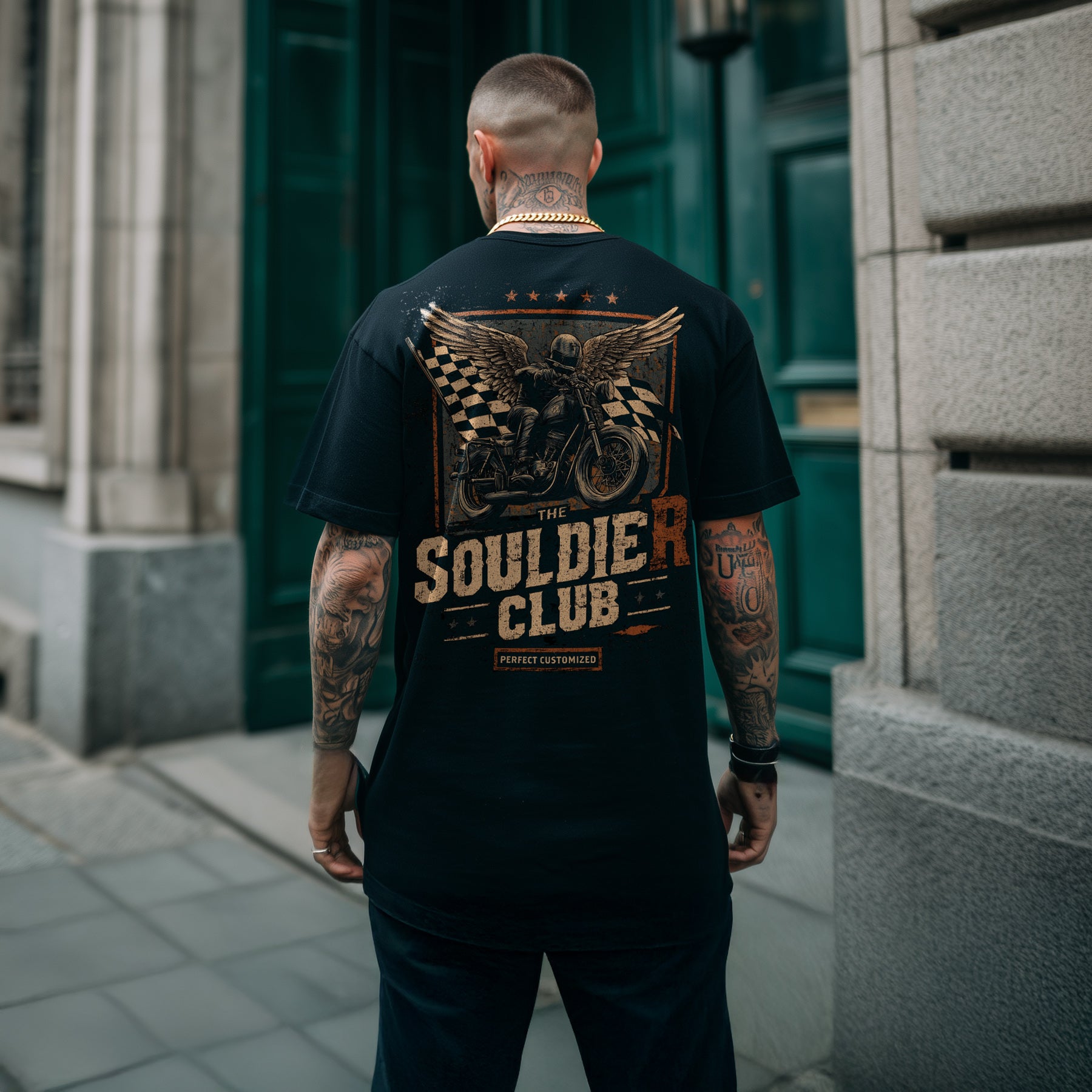 Großer Motivdruck mit Hausgemachtem Design auf dem Rücken.