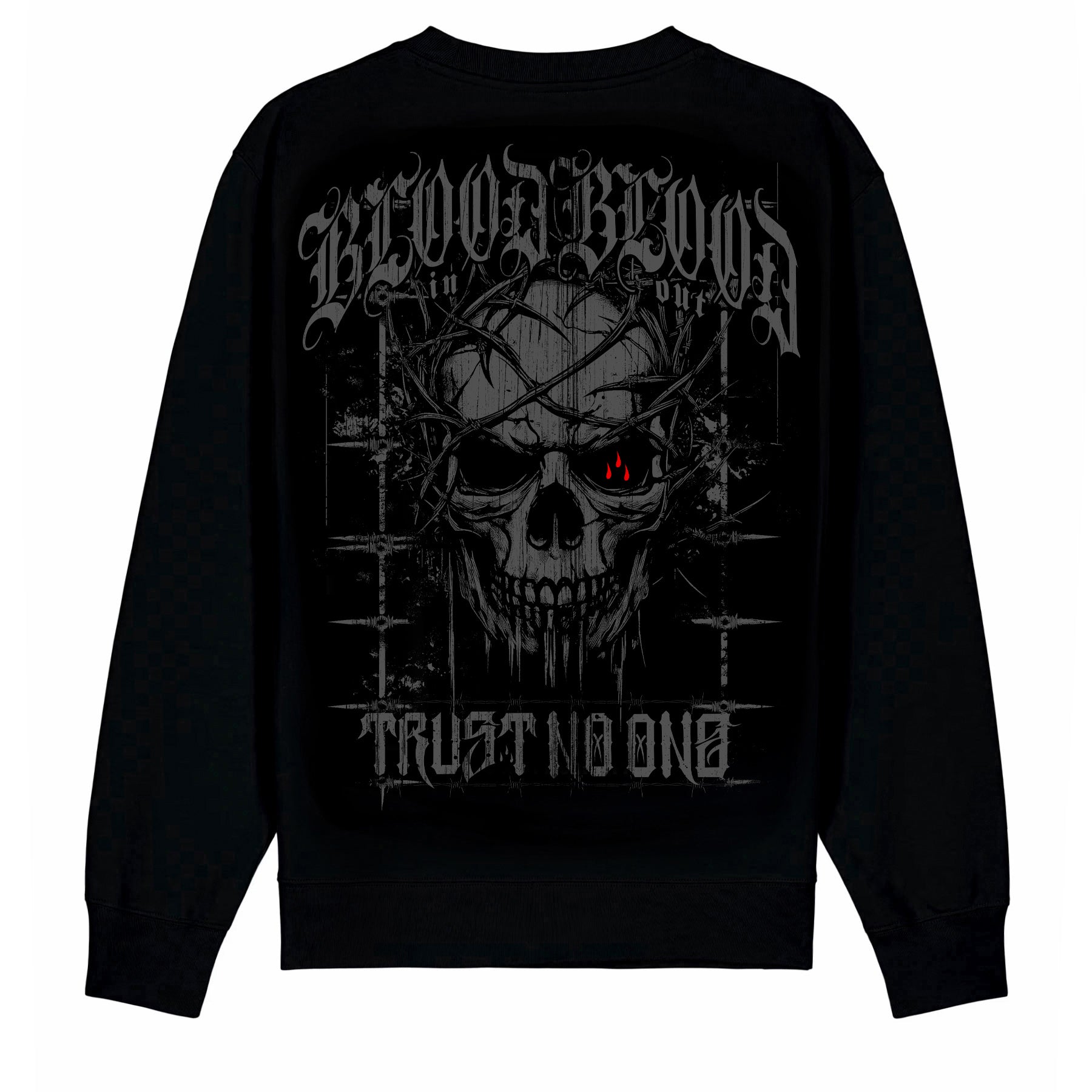Das Grey Wire Sweatshirt Black überzeugt mit einem markanten Motiv auf der Vorderseite, das technische Elemente und klare Linien kombiniert. Das hausgemachte Design hebt sich kontrastreich vom schwarzen Stoff ab und verleiht dem Sweatshirt eine moderne, urbane Ausstrahlung.